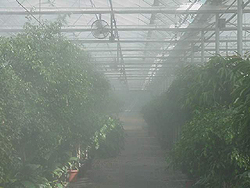 OutdoorCooling's Environmental Control System provides the ideal year-round growing conditions in both mechanical and natural ventilation in greenhouses. In the summer, the fog's 5-micron size water droplets quickly evaporate, to cool and humidify the air. In winter, the fog maintains controlled humidity levels to prevent plant dehydration. It is ideal for propagation, germination and plug production year-round. OutdoorCooling's systems are custom-designed on CAD and manufactured for each specific greenhouse structure and crop. The grower may easily install the system, pre-assembled sections connect quickly and easily, therefore resulting in significant cost savings.