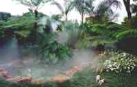 OutdoorCooling fog droplets are so small they stay suspended in the air just like clouds. This creates a dramatic effect, which resembles clouds, fog, smoke or steam. Controlling the pressure and the orientation of the atomisation nozzles a thick billowing cloud constantly moving or a light fog variation can be created. The systems can be used indoors and outdoors. The effect of fog for special effects is so dramatic that it got the attention of Hollywood and has been used in movies such as Jurassic Park and Apollo 13.