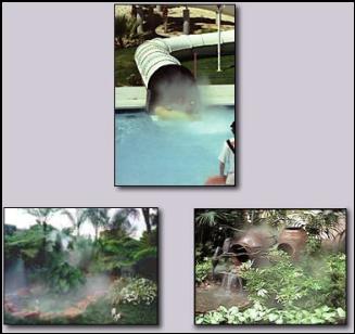 Fog droplets are so small they stay suspended in the air just like clouds. This creates a dramatic effect, which resembles clouds, fog, smoke or steam. Controlling the pressure and the orientation of the atomisation nozzles a thick billowing cloud constantly moving or a light fog variation can be created. The systems can be used indoors and outdoors. The effect of fog for special effects is so dramatic that it got the attention of Hollywood and has been used in movies such as Jurassic Park and Apollo 13.